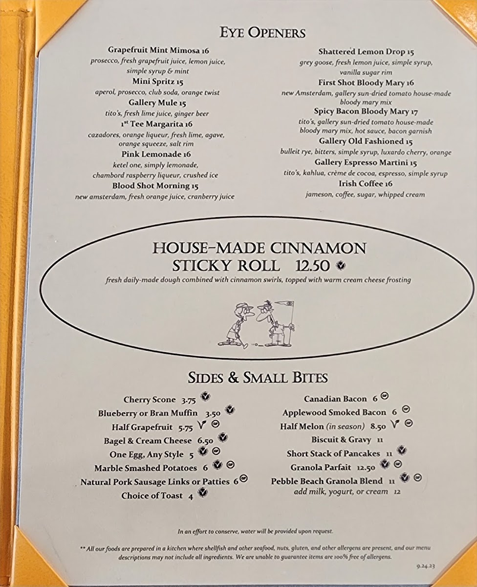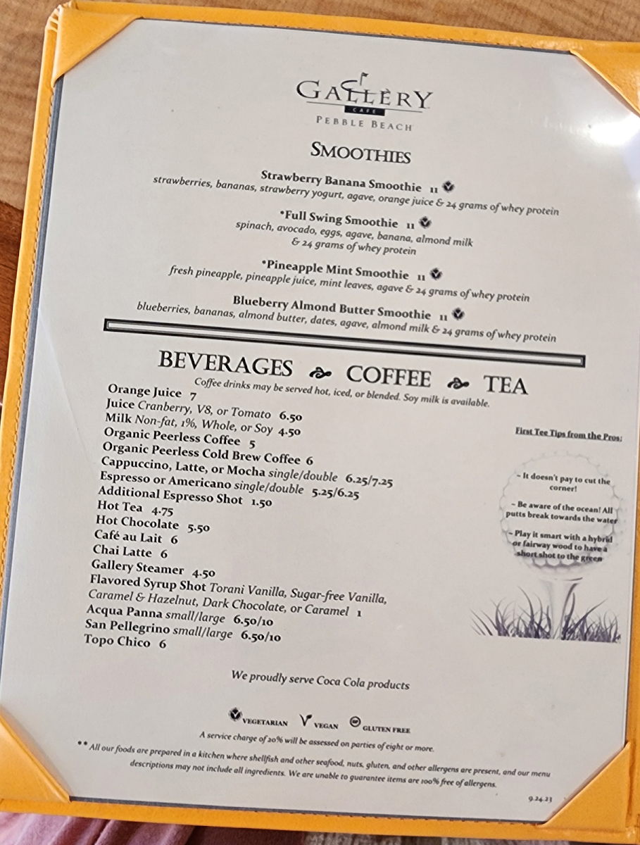 If you find yourself strolling down 17 Mile Drive in Pebble Beach, make sure to stop by the Gallery Café. Their menu offers a delightful mix of dishes that are perfect for any time of the day. Whether you're in the mood for a light bite or a full meal, you'll find something to satisfy your cravings. The atmosphere is casual and inviting, making it an ideal spot to enjoy a meal with friends or family.