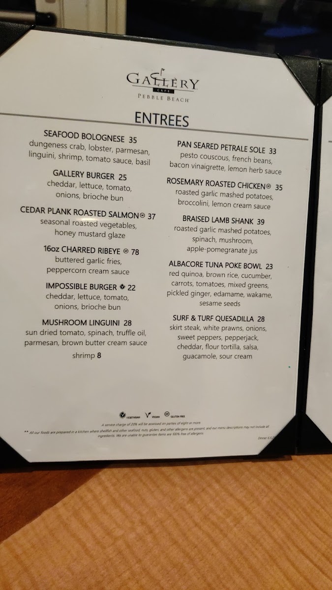 Whatever you choose, each dish is thoughtfully prepared, ensuring a satisfying experience every time you visit. The menu here truly has something for everyone, making it a must-try destination in Pebble Beach.